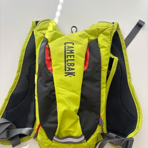 CamelBak juomareppu juomarakolla. Reppu on musta ja siinä on olkahihnat selässä kantamista varten. Mukana tulee sininen juomarakko (1,5l) letkulla ja suukappaleella, joka sijoitetaan repun sisälle. Sopii juomaveden kuljettamiseen esimerkiksi pyöräilyssä, juoksussa tai retkeilyssä.