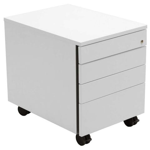 Martela Cupio laatikosto, 4-laatikkoa, valkoinen, lukko, avain, lukittavat rullat.