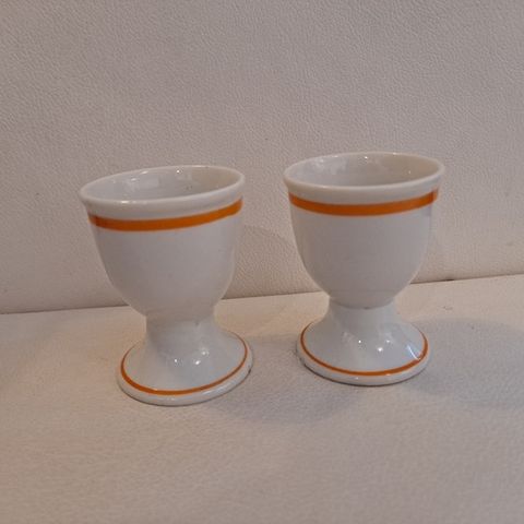 Keraamiset munakupit, joissa oranssi ulkopinta ja vihreitä pilkkuja. Sisäpinta on valkoinen. Sopivat keitettyjen kananmunien tarjoiluun.