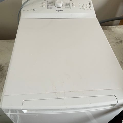 Whirlpool päältä täytettävä pesukone. Likainen päältä mutta toimii hyvin