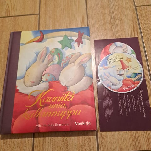 Lisäksi saa mukaan Kauniita unia vauvalle CD-levyn, jossa on lasta (isompaakin) rauhoittavaa musiikkia kauniina instrumentaali- ja lauluesityksinä. Oikein hyväkuntoinen tämäkin.