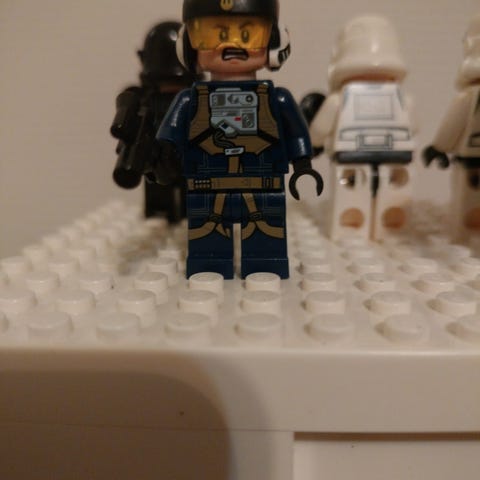 Minifiguuri on hyvässä kunnossa. Huomasin kuitenkin toisella puolella vasemmassa poskessa osuman.