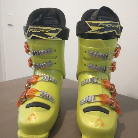 Fischer Ranger 60 laskettelumonot lime-värissä. Neljä metallisolkea ja leveä tarrakiristys varmistavat istuvuuden ja säädettävyyden. Monossa on kumipohja ja koko merkitty pohjaan (mm 303). Soveltuvat lasketteluun rinteissä, rakenne tukee jalkaa ja nilkkaa laskun aikana.