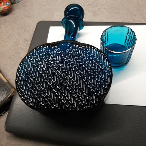Stil kirahvit turkoosit pullo pullot filandari korkki 1960 1960-luvulta turkoosi turkoosit sininen siniset stillin karahvit keräily värillinen värillinenlasi lasi lasit vanha vanhat vintage vintaget korkki korkillinen