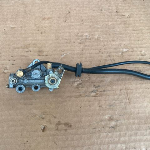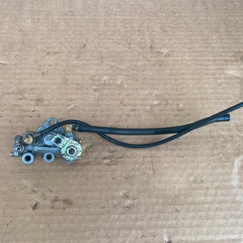 Hyvä öljypumppu, josta puuttuu jousitus systeemit ja yläosasta yhden letkun lähtö. Se tukittu pultilla.