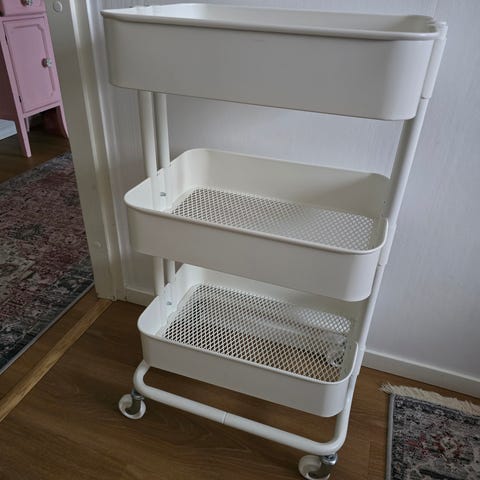 4kk sitten Ikeasta ostettu tarjoiluvaunu kannella, ei löytänyt paikkaansa. Kissatalous.