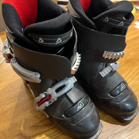 Alpina AJ3 laskettelumonot juniorille. Kengän koko on 220–225 mm (ulkokenkä 267mm).