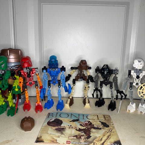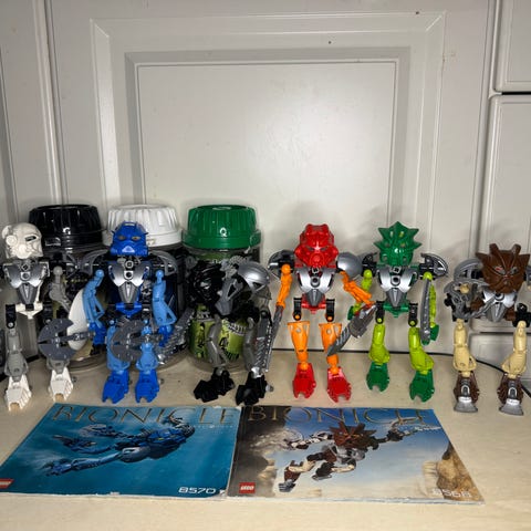 LEGO Bionicle Bohrok-Kal setti, 6 Bioniclea + kranat, 2 purkkia, 1 ohje ja 1 mainos