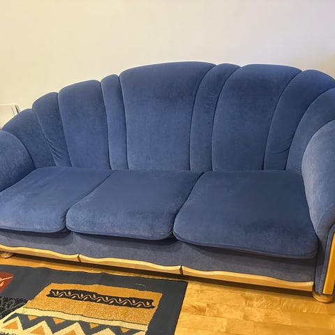 Sotkasta ostettu vuonna 2021 kahden istuttava vuodesohva. Vuodeosuus 120cm (kuvassa ei ole kokonaan levitetty auki), koko sohvan leveys n. 150cm, korkeus 66cm, syvyys 90cm. Sohvan sisällä on tilava vuodelaatikko.