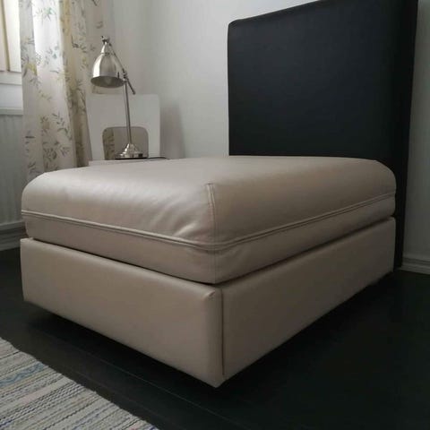 Pääty ei ole välttämätön osa sohvaa, saa vaivatta nostamalla irti paikoiltaan. Voi siis käyttää myös rahina keskilattialla. Tämän osan voi kiinnittää muihin Vallentuna-sohvan moduuleihin ja sijoittaa vaikkapa osaksi kulmasohvaa.