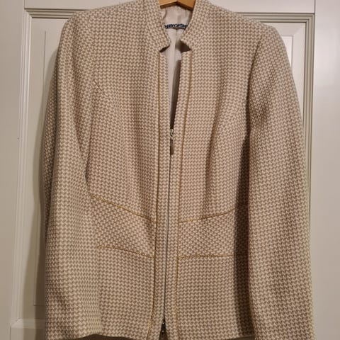 Tummansininen bleiseri. Merkki Gerry Weber. Koko 42. Sivutaskut. Samettia kauluksessa.
