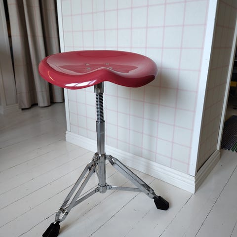 Hakusanat: Tuoli, suomi, punainen, jakkara, pyörät, säädettävä, satulatuoli, ergonominen, Valmistaja, moderni retro, salli