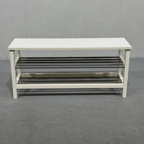 Kevytrunkoinen istuin, jossa on alla kaksi säilytyskoria. Musta väri ja yksinkertainen muotoilu tekevät siitä käytännöllisen lisän mihin tahansa tilaan. Koreissa on punottu tyyli. Istuimessa on normaalia käytön kulumaa ja siro runko.