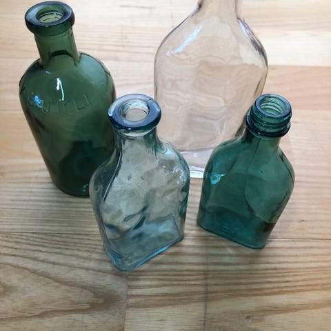 Ruskeat lasiset viinipullot, mukana puinen kuljetuslaatikko. Pullot sopivat esimerkiksi koristekäyttöön, sisustukseen tai rekvisiittaan. Puulaatikko on mitoitettu pullojen kuljettamiseen ja säilyttämiseen. Lasipullot ovat paksua, läpikuultavaa ruskeaa lasia.