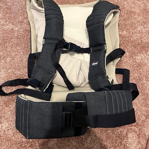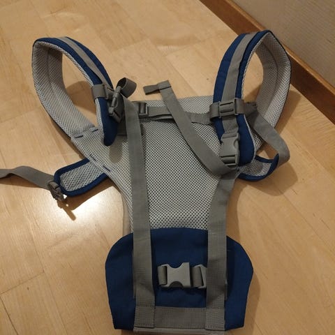Chicco merkkinen lasten kantoreppu, joka ollut käytössä tähän saakka. Sininen, vahva kangas, joka on täysin ehjä. Kaikki ompeleet ovat kunnossa. Säädettävät ja pehmustetut kantohihnat ja vyötäröhihnat. Istuinosa säädettävä ja siinä on turvavyö lapselle.Metallirunko tukee kantamista ja mahdollistaa repun asettamisen maahan tukevasti. Soveltuu lapsen kantamiseen selässä ulkoillessa tai liikkuessa. Niskatuki puuttuu.