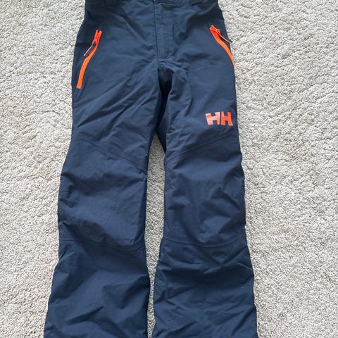 Helly Hansenin oranssit lasketteluhousut koko 128. Hyvässä kunnossa, lahkeissa pari pientä tummentumaan. Vyötäröllä kiristysnauhat ja lahkeissa lumilukot.