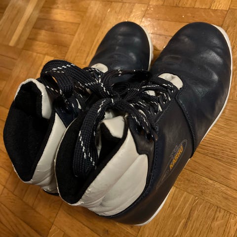 37-koko Karhu Action Cross Country hiihtomonot. Väri pääosin valkoinen, violetteja ja vihreitä yksityiskohtia. Nauhakiinnitys ja metallinen kärkipala perinteiseen siteeseen. Soveltuvat maastohiihtoon.