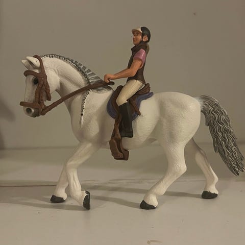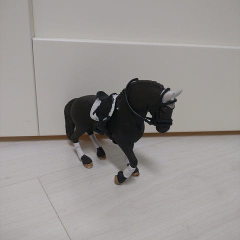 06 Schleich hevonen(paint ori) ja satulasetti. Hevosessa jonkin verran kulumaa ja jälkiä, mutta varusteet ovat erinomaisessa kunnossa.
