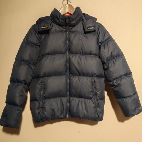 Myydään tummansininen muhkea Tommy Hilfiger untuvatakki, koko 152, vastaa kokoaan, ei erityisen reilu.