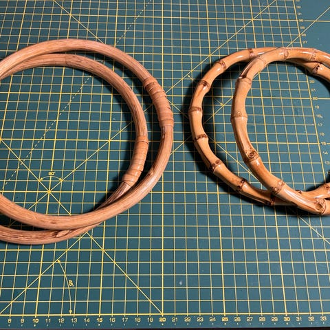 Vanhat rottinkisangat, kaaren korkeus 14cm, sankaväli 21cm, kierteisen nupit metallitangossa