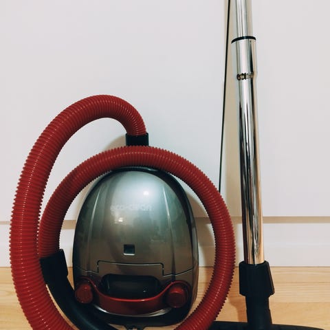Sininen vähälle käytölle jäänyt pölynimuri pois muuton tieltä