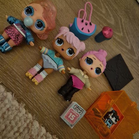 L.O.L. Surprise nuket ja tarvikkeet. Pakettiin kuuluu useita pieniä L.O.L. Surprise -nukkeja sekä erilaisia lisävarusteita, kuten juomapulloja, ruokatarvikkeita, pieniä asusteita ja kortteja. Mukana on myös neljä avattavaa kuljetuskapselia/nukkekaappia, joissa nuket voidaan säilyttää tai asettaa esille.