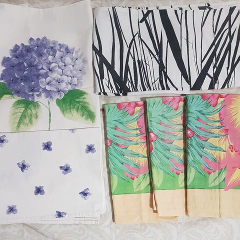 Myydään hyväkuntoiset vuodetekstiilit: aluslakanat 5 kpl, pussilakanat 3kpl ja tyynyliinat 6 kpl. Puuvilla. Nouto