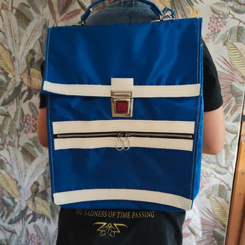 Luultavasti 70-luvulta oleva Yhdyspankin logolla varustettu kevyt reppu. Saatu ehkä kalakilpailusta. Käyttämätön.