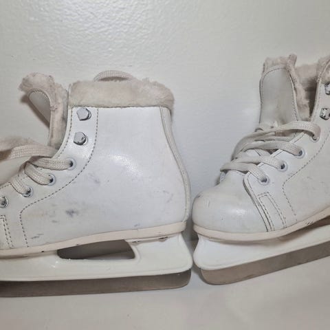 Tyttöjen luistimet. Koko 28. Väri valkoinen. Nauhakiinnitys ja korkea varsi nilkan tukemiseksi. Myös nouto sopii.