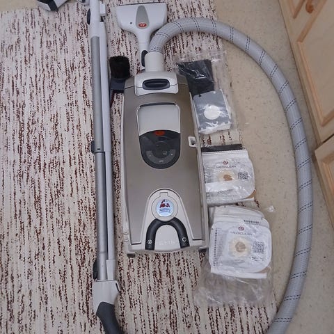 Johdollinen, pölypussillinen lattiaimuri, jossa säädettävä teleskooppiputki ja letku. Laitteessa on päälle/pois-kytkin ja säätönuppi imutehon säätöön. Mukana yleismallinen lattiasuulake. Kaupan päälle Menalux 2000 -pölypussit, jotka sopivat Bosch/Siemens-pölynimureihin. Käytön jälkiä näkyy ulkopinnassa, mutta muuten hyvä kunto.