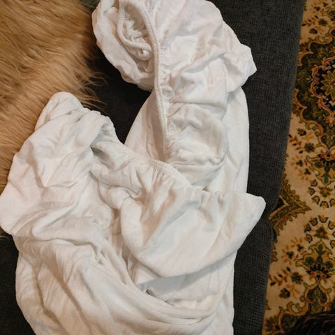 Löytyisikö sinulta ylimääräistä valkoista lakanaa, josta vielä olisi jatkokäyttöä asun tekemiseen? 😊