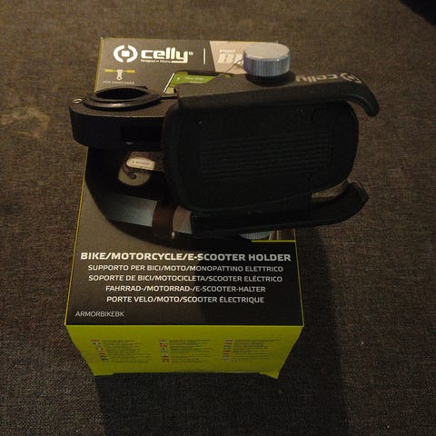 Puhelinteline sähköpotkulaudan tankoon. Säädettävä kiinnitys ja puhelimen tuplakiinnitys. Sopii 5,5-8 cm:n puhelimille.
