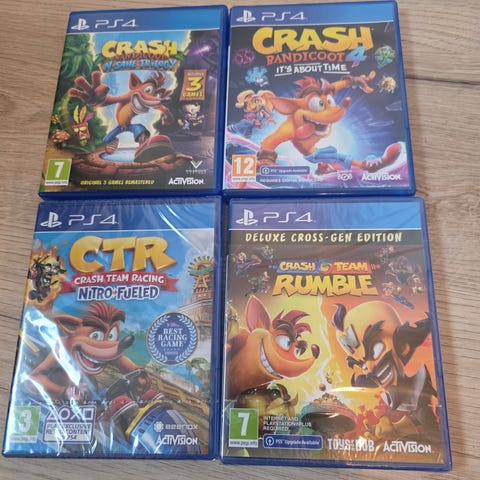 Activision Crash Bandicoot N. Sane Trilogy Playstation 4 -peli. Sisältää remasteroidut Crash Bandicoot -pelit yhtenä kokoelmana PS4-konsolille. Ikäraja PEGI 7.