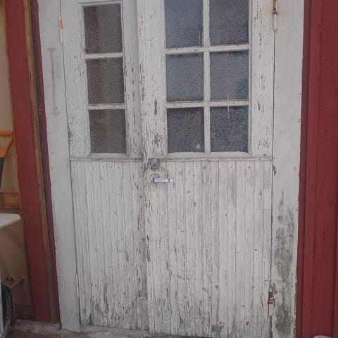Puu ovi. Maalattu valkoiseksi. Ei lukkoa. Vaikka raksaoveksi.