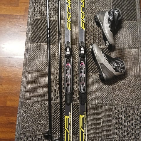 – Mukaan sauvat 145 cm ja monot Alpina koko 40