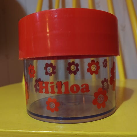 Myyntiin vintage Tanskalainen Erik Kold Plastin malli numero 7015 muovipurkki. Kirkkaan oranssi ja korkeus noin 15cm. Vielä näkyy alkuperäinen Anttilan hintalappu pohjassa. Pientä pinta naarmua ihan säilytyksestä ja muutoista yms johtuvaa muuten aika hyvä kuntoinen. Kannessa pieni musta pilkku josta kuva. Hinta 8€ löytyy Salosta MMM