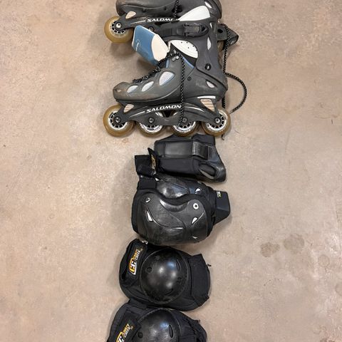 Hyväkuntoiset perus rullaluistimet polvi ja kyynärsuojat mukaan.