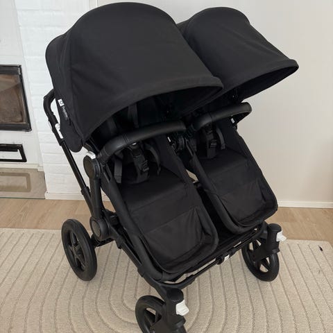 Bugaboolta 1/23 tilatut, 2/23 käyttöönotetut vaunut, jotka saa sekä yhdelle että kahdelle lapselle. Helposti muunneltavissa, mahtuu yllättävän pieneen tilaan ja mahtuu ovista tuplanakin, helppo kasata ja purkaa. Rungossa myös valmius merkin oman seisomalaudan kiinnitykseen
