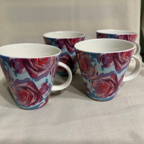Arabian Koko Roses mukit 4 kpl. Siistit ja ehjät. Mukin korkeus 10 cm, vetoisuus 0,35 l. Poistunut tuotannosta v. 2013. Nouto käteismaksulla.