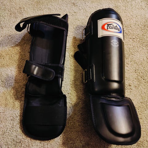 Fairtex säärisuojat. Koko M. Hyvässä kunnossa, ei haise paskalle.