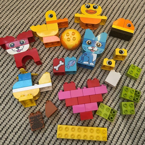 Lego Duplot + punainen säilytyslaatikko