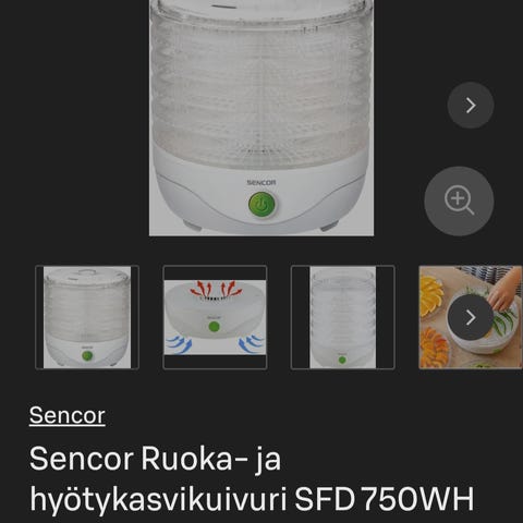 Hedelmien, vihannesten, yrttien tai sienien kuivaamiseen.