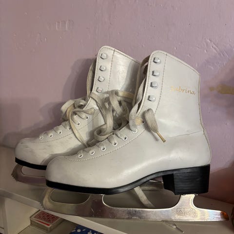 RWD GS taitoluistimet, koko 35. Valkoiset nahkajäljitelmäpintaiset luistimet, joissa nauhakiinnitys ja tukevat varret. Terissä merkintä GS ja pituus 230 mm. Soveltuvat esimerkiksi taitoluisteluun tai harrasteluisteluun jäällä.