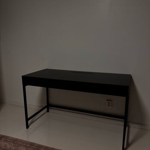 Ikean vähän käytetyt, hiilikuitu pelipöytä ja keinonahka pelituoli.