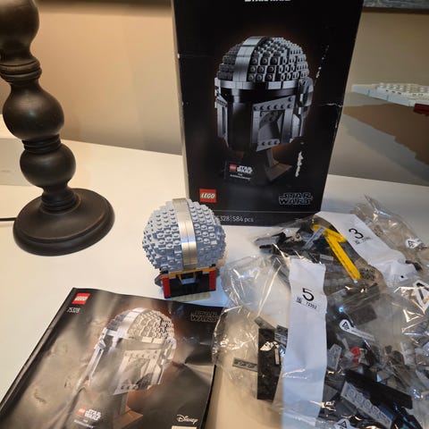 Tummanharmaita kypärän antenneja ja visiirejä on tallella vain 3 kpl. Muuten näyttäisi, että kaikki osat on tallella. Ohjekirja löytyy.