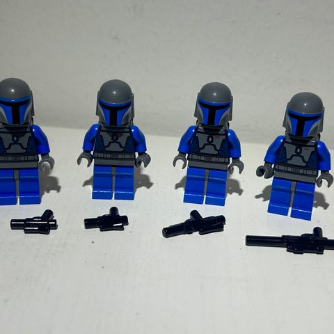 Minifiguurit ovat hyvässä kunnossa. Huomasin kuitenkin, että vaaleansinisen Mandalorian Tribe Warrior (sw1077) - minifiguurin kyljissä on naarmut tai ihan pienet alkavat halkeamat.