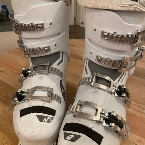 Nordica Cruise S laskettelumonot. Väri valkoinen, useat säädettävät soljet ja kumipohjat. Sopivat alppihiihtoon tavallisten alppisiteiden kanssa. Malli tarjoaa tukevan kuoren ja lämpöä eristävän sisäkengän. Kenkien ulkopuolella Nordican logot ja mallimerkinnät, pohjassa vaihdettavat kantapalat ja kärkipalat paremman pidon ja kulutuskestävyyden takaamiseksi.