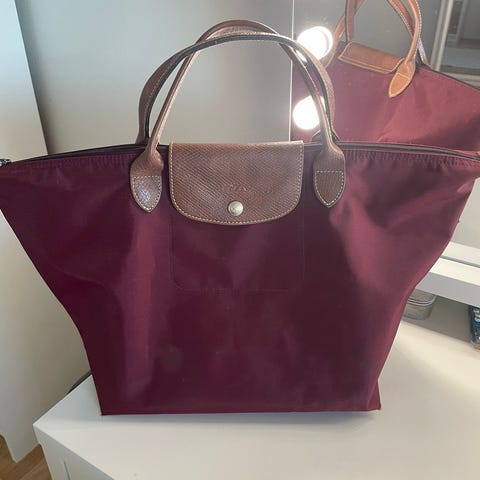 Secondhandina ostettu pilkullinen longchamp, weekender koko. Leveys noin 69cm ja korkeus noin 39cm. Kulumaa pinnassa, mutta ehjä.