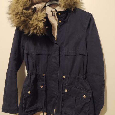 Hupussa tekoturkisreunainen huppu, kaunis, tyköistuva malli. Hyväkuntoinen takki.