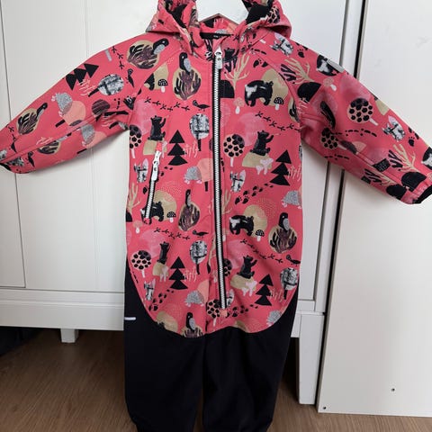 Reiman softshell / välikausihaalari koossa 86. Väri syvä luumu oranssilla vuorilla ja vetoketjuilla. Muuten ehjä, paitsi hihansuussa resori kaipaa kiinnittämistä ja vetoketjun pielessä rikkinäinen kohta, joka ei vaikuta käyttöön. Jalkalenksut vaihtoon.